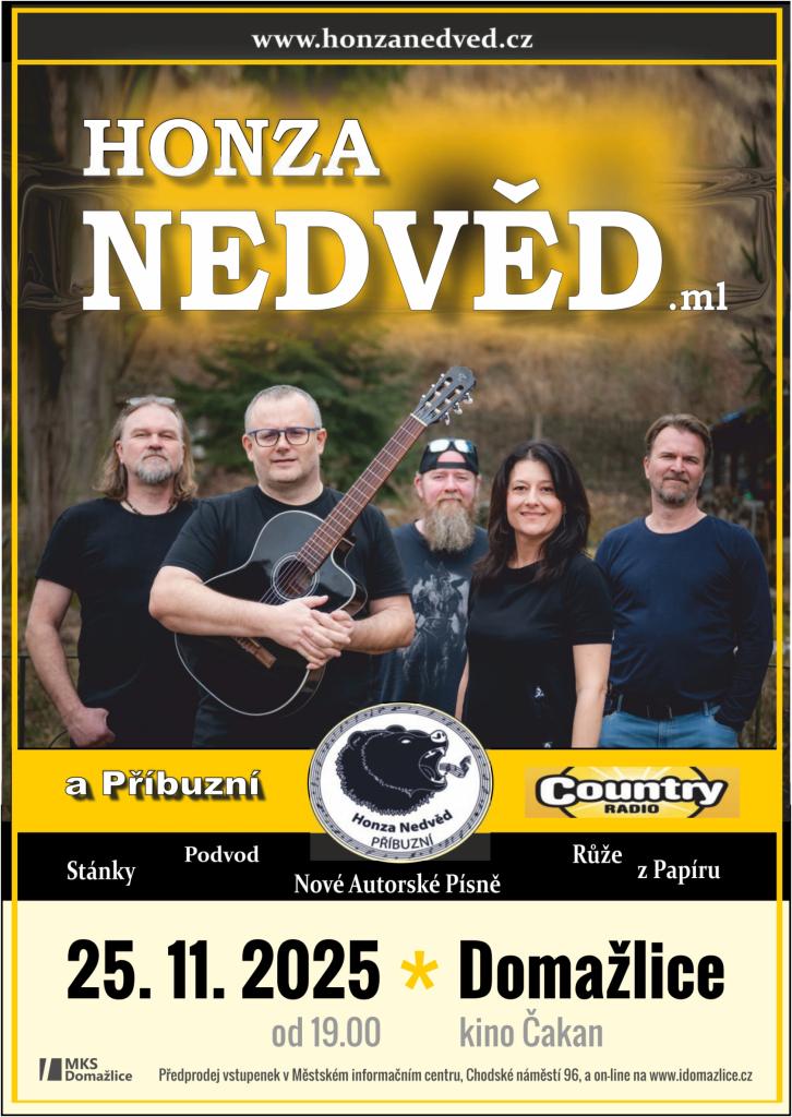 Na koncertech si můžete zazpívat nejen staré hity Bratří Nedvědů, skupiny Spirituál Kvintet, Brontosaurů ale i Příbuzní. Uslyšíte i některé nové autorské písně, které Honza vydává na své nové desce a určitě alespoň jednu zahraje a zazpívá.